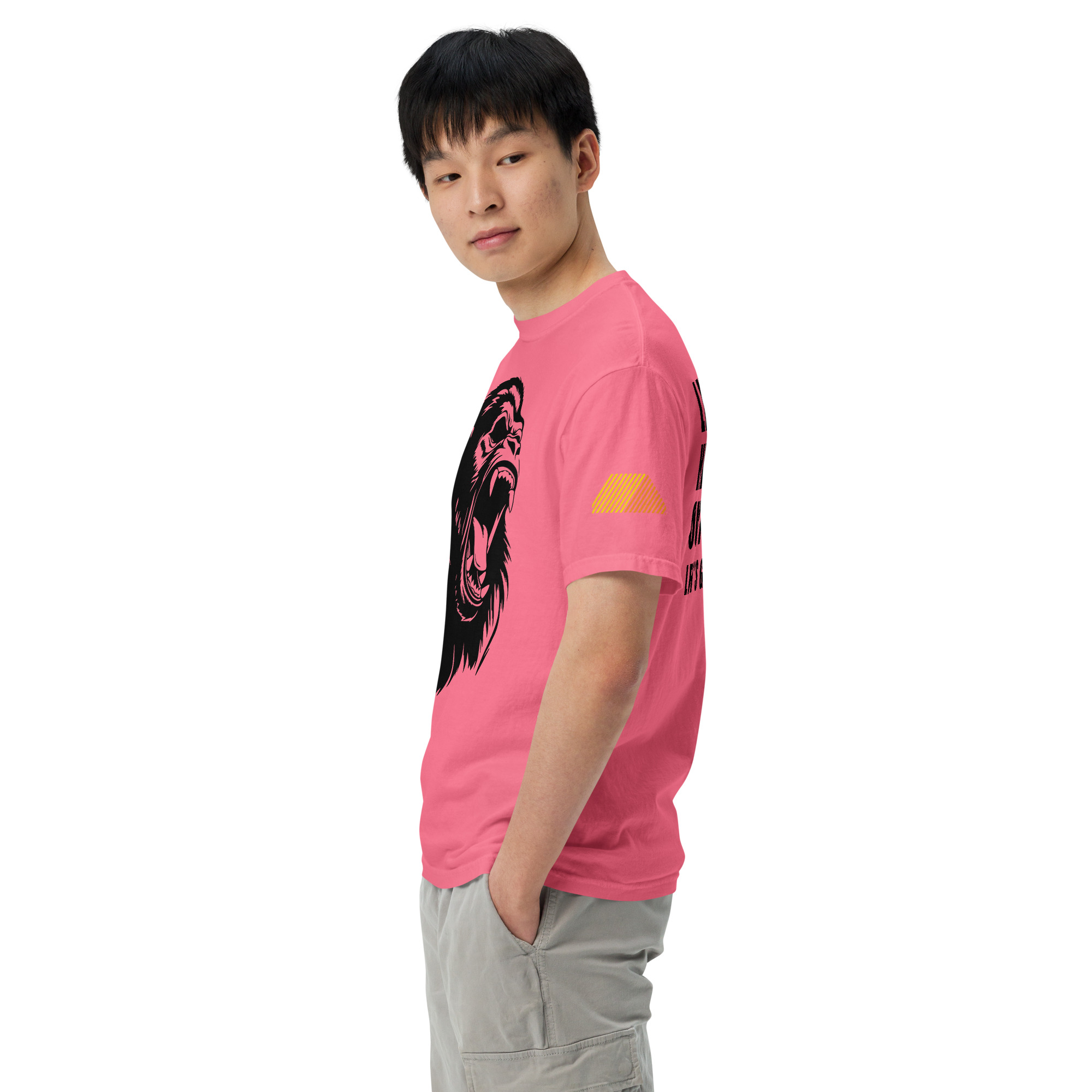 If you’re looking for a thick, structured tee that’s also super soft and breathable—look no further! The unisex garment-dyed heavyweight t-shirt ticks all the boxes and is made of 100% ring-spun cotton. The regular t-shirt style will complement most looks and fit you to a tee.